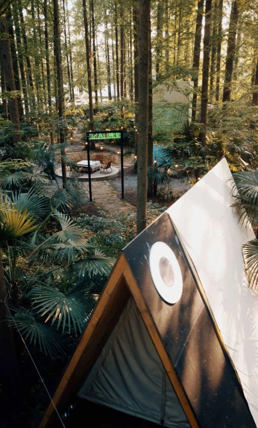 8栋木屋与林间露营位、苔藓覆盖的公共木亭共同编织出梦境实验场。当月光漫过苔痕斑驳的碎石子小径,整个营地便成了宫崎骏动画里的移动城堡,每个角落都在诉说“不打扰”的生态哲学。