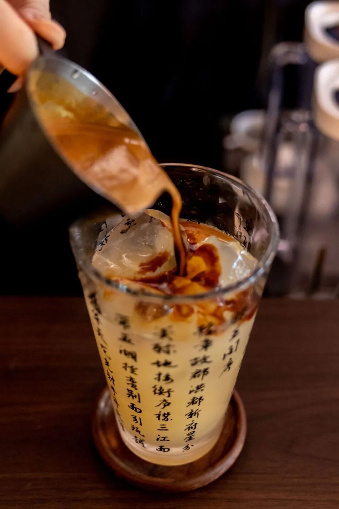 在这里点一杯观音渡,咖啡师把咖啡浓缩液和茶底一起用蒸汽打发,再混入冰块,口感更绵密,咖啡香和茶底香完美融合,提神效果满分!