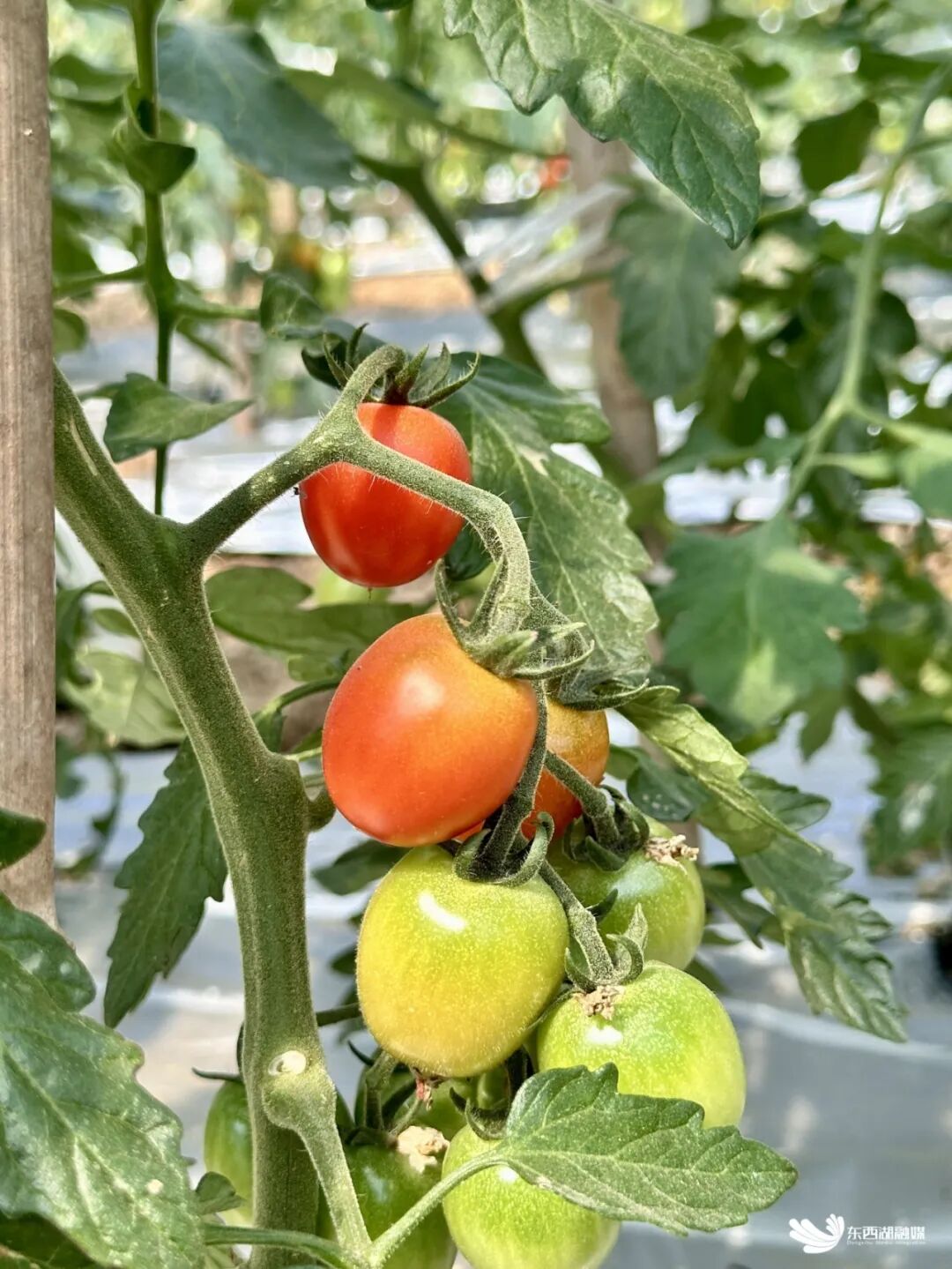 近日,记者来到辛安渡街汉宜社区,走进湖北轩禾辕有机农产品种植配送专业合作社的种植大棚,只见翠绿的藤蔓攀爬成墙,一串串小番茄像宝石般坠满枝头,红的像玛瑙,黄的似琥珀,青的如翡翠,阳光下晶莹透亮,饱满得快要撑破薄薄的果皮。
