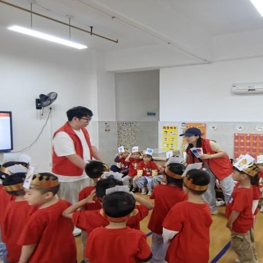 志愿者们为小朋友耐心讲解并示范制作步骤