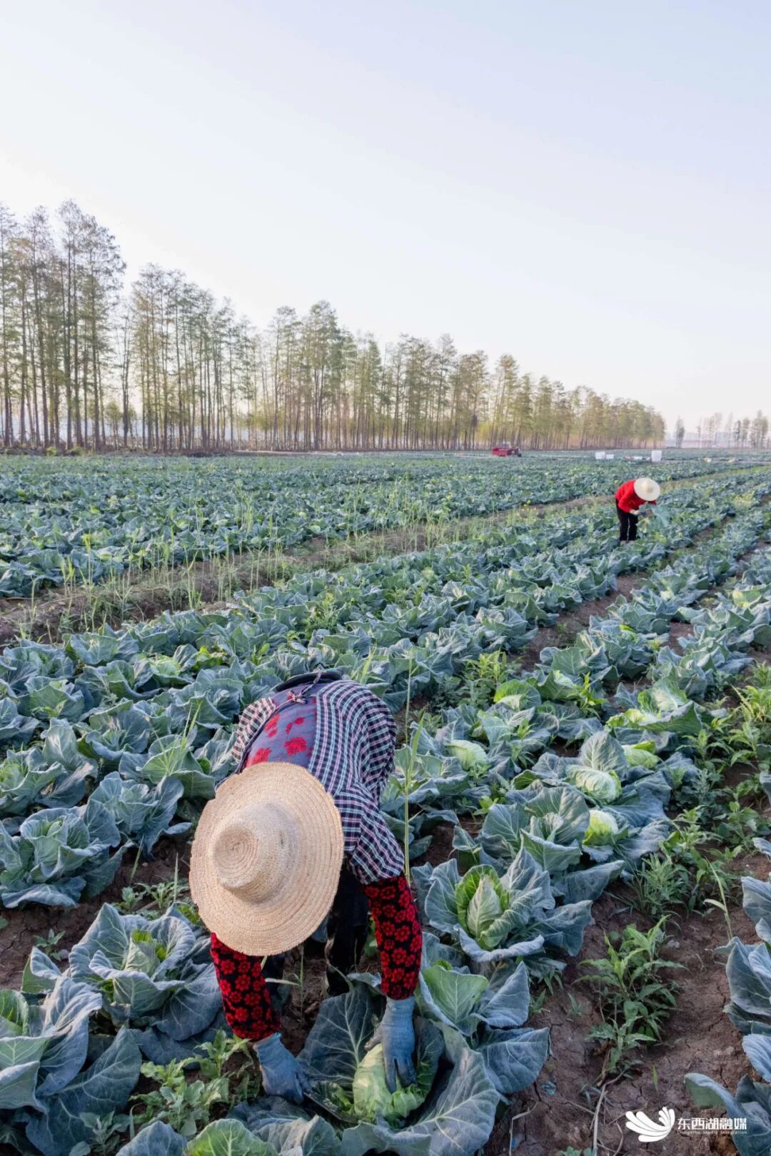 5月19日清晨,西湖大农仓的大棚内一片繁忙景象,工人师傅们在田间地头穿梭,手指翻飞间,带着水珠的鲜嫩包菜被利索收割。
