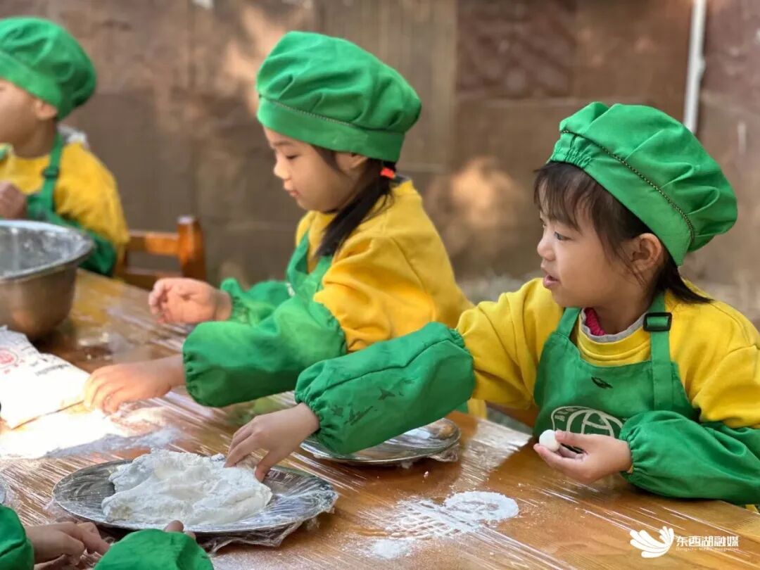 5月26日,金银湖街恋湖社区晶晶恋湖幼儿园,社区与园方共建的儿童友好农场内,孩子们围着蒸笼雀跃不已。这堂课,孩子们学习如何制作面点。