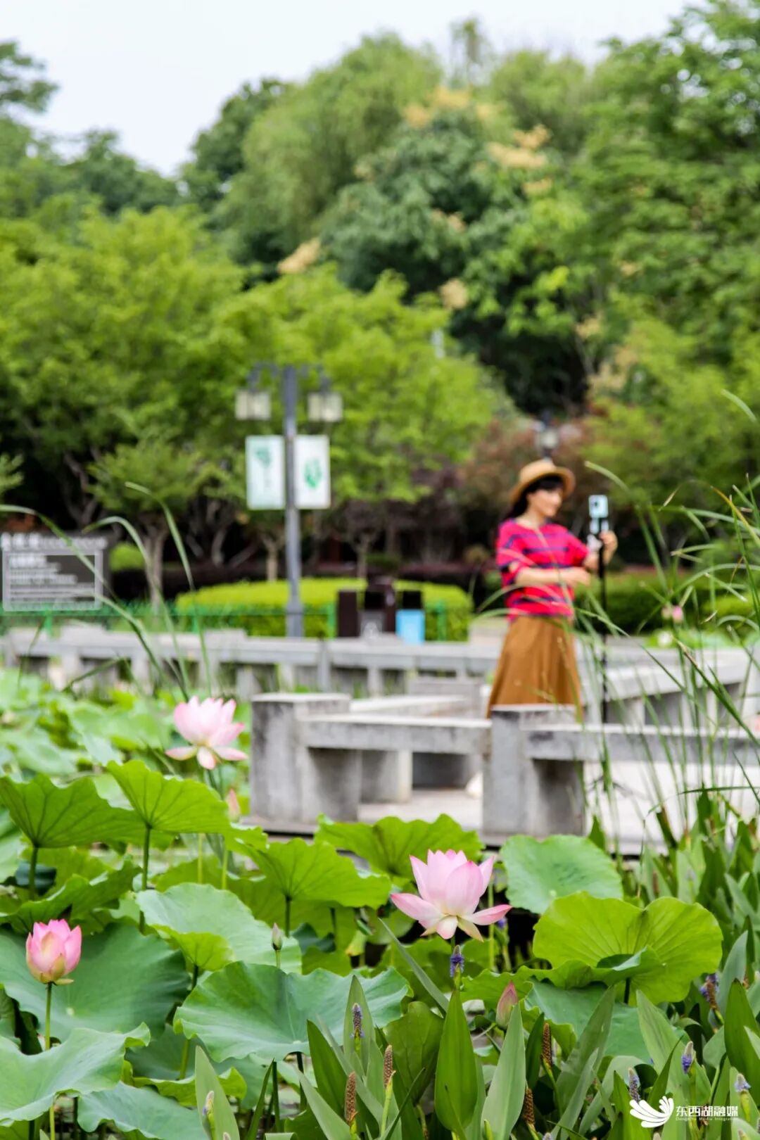 东西湖居民杨女士每年都会来公园赏荷,今年她约上两位好友,特意打扮一番前来拍照。她们在荷畔曲径缓缓穿行,裙摆飘飘、荷香阵阵,美丽的心情全写在笑靥如花的脸上。