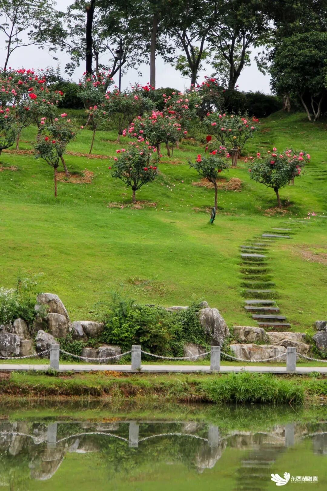 公园草坪广阔,非常适合遛娃。漫步园中,树下随处可见供游客遮阳休憩的板凳。如今公园管理处门前的月季花和梭鱼草正盛开,红的、紫的,为公园绿意葱茏的氛围增添了明艳色彩。