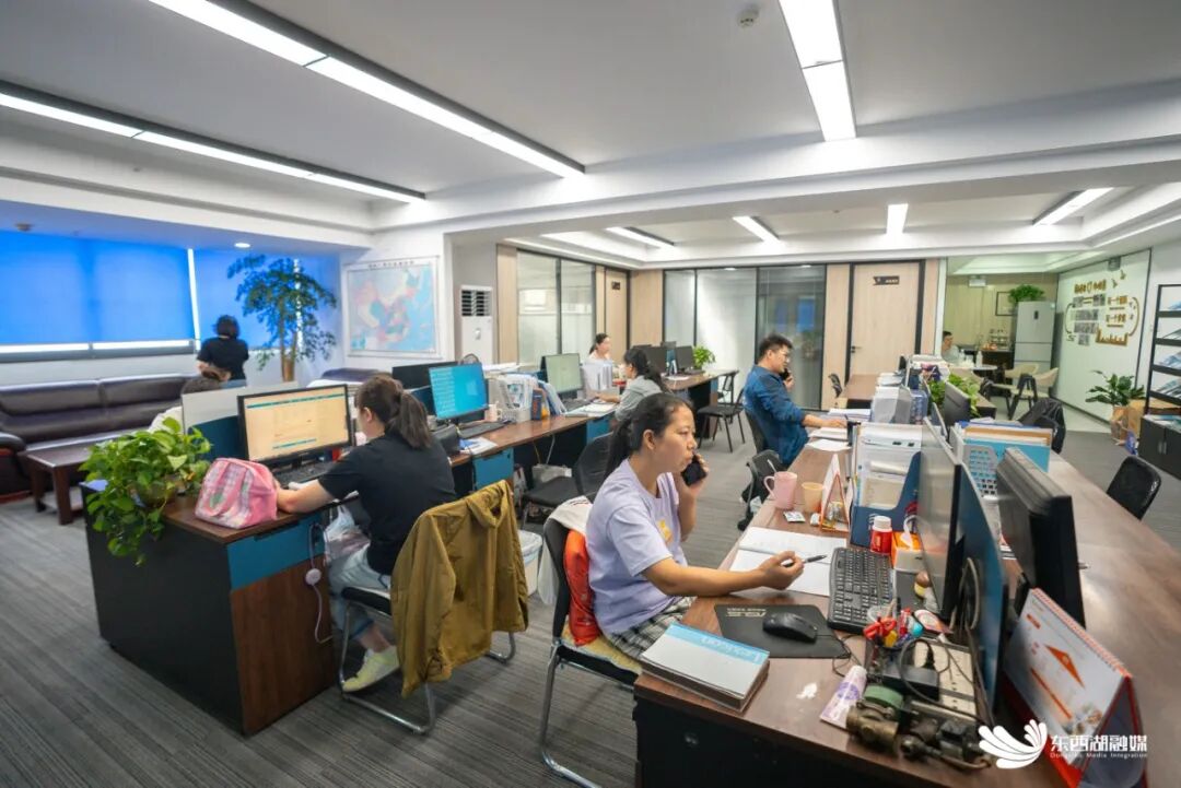 公司办公室内员工正在与客户进行沟通。