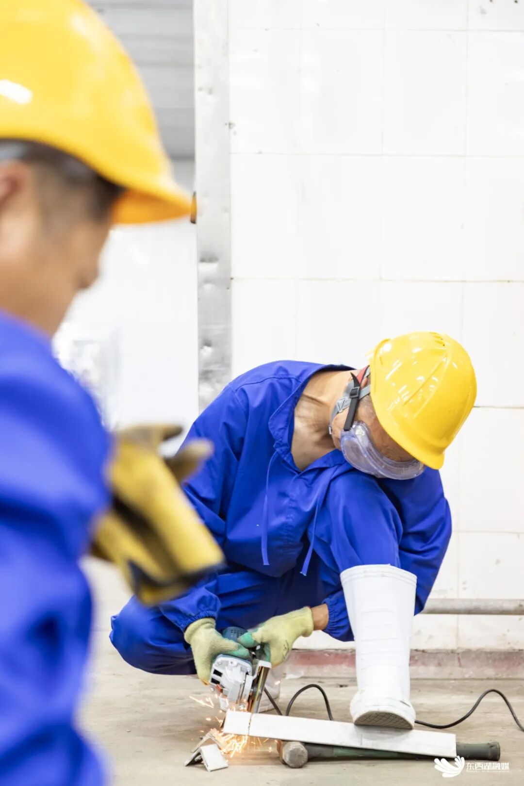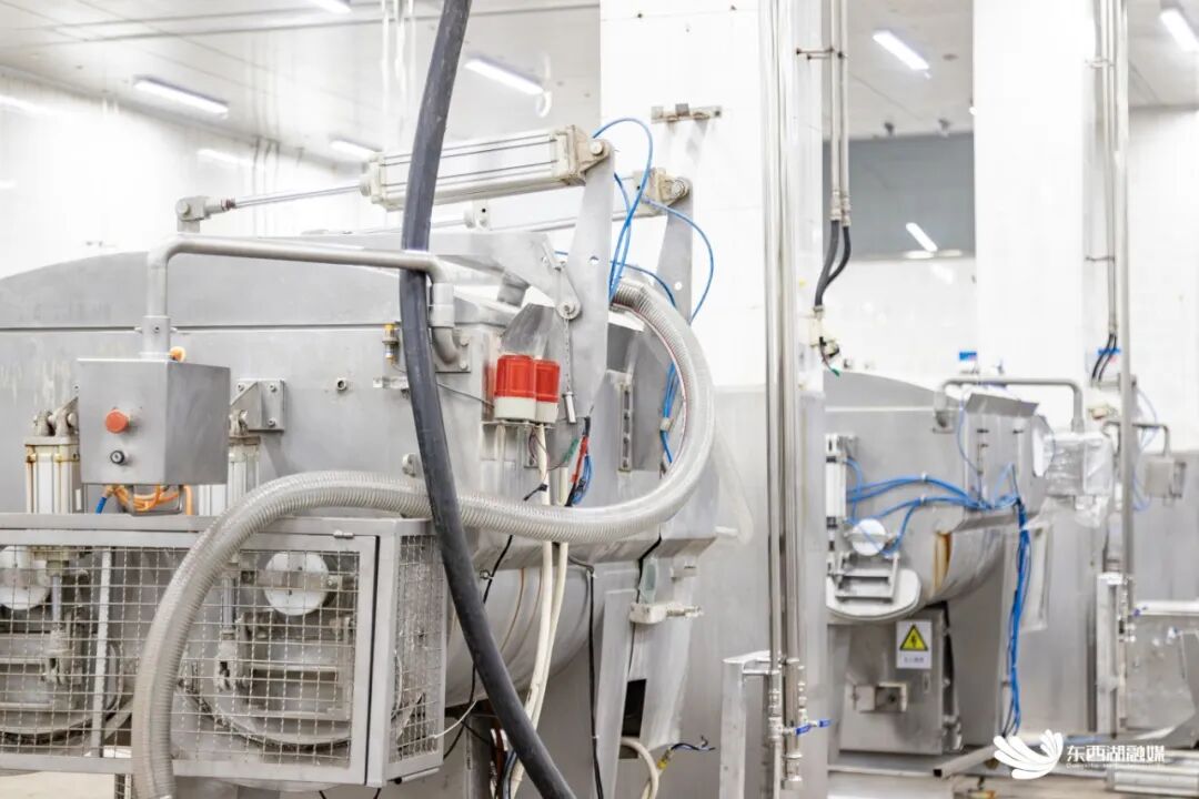 绞肉机、纯水罐等生产设备正在进行紧密安装。