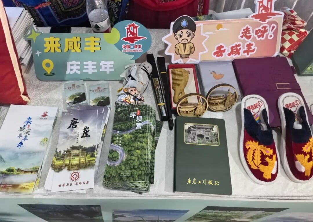 活动现场,咸丰丰富的互动体验区。各式文创产品、富硒特产琳琅满目,让人目不暇接,全方位展示了咸丰文旅的独特魅力。