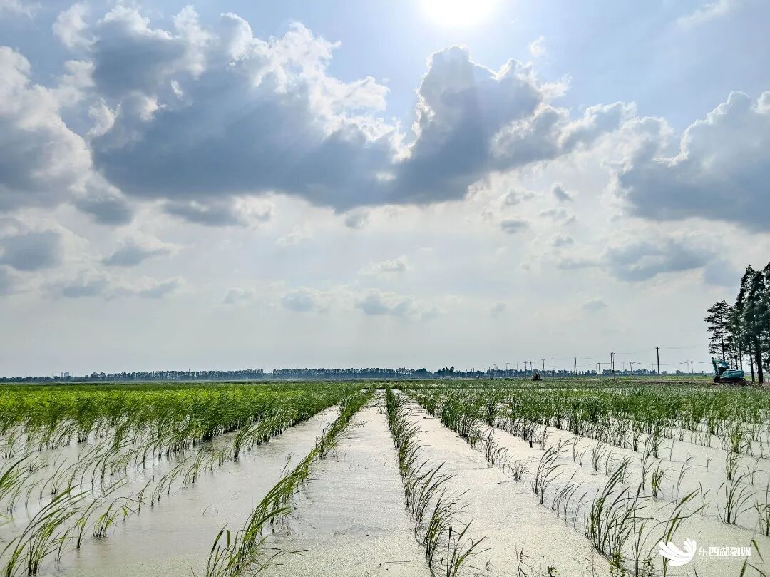 为防范雨水冲刷种子导致裸露、积水烂种等风险,农仓已落实抽排、清理沟渠等多项紧急预案。记者看到,每个生产单元均配备硬化沟渠和U型排水渠,渠端设有应急泵站,目前田间无积水现象。