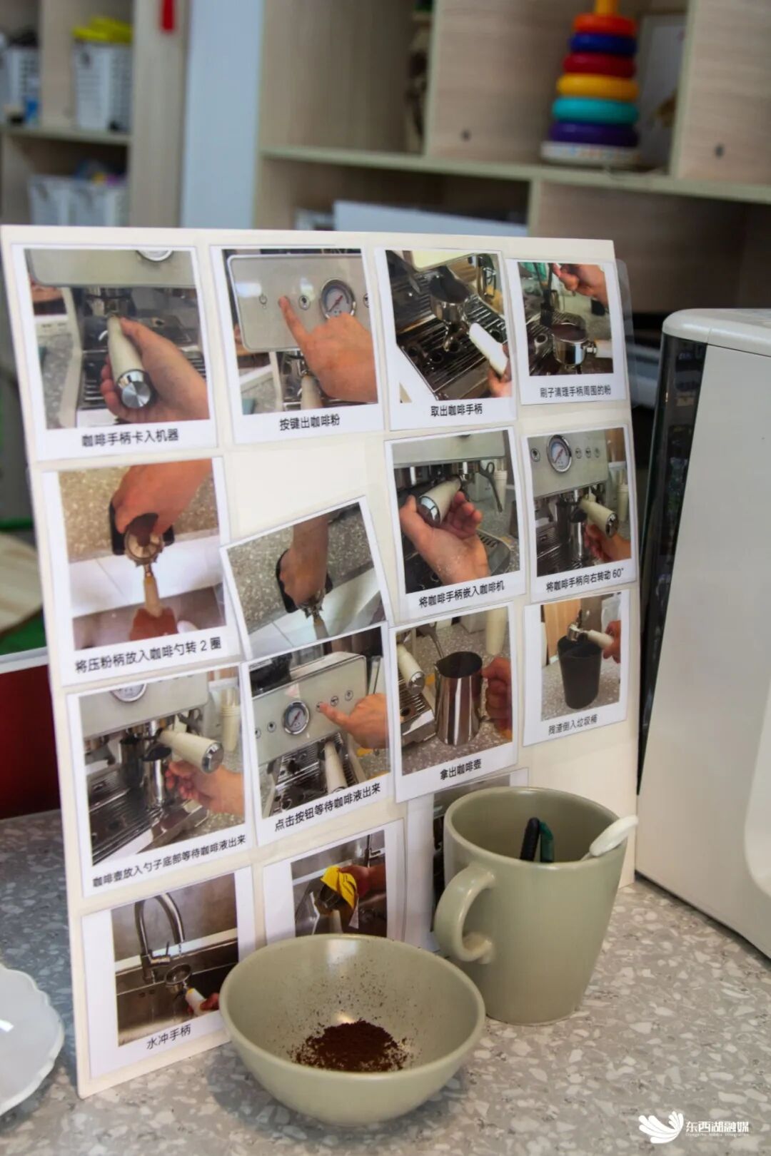 饮品制作流程简化成图片指引,方便特殊青年学习操作。