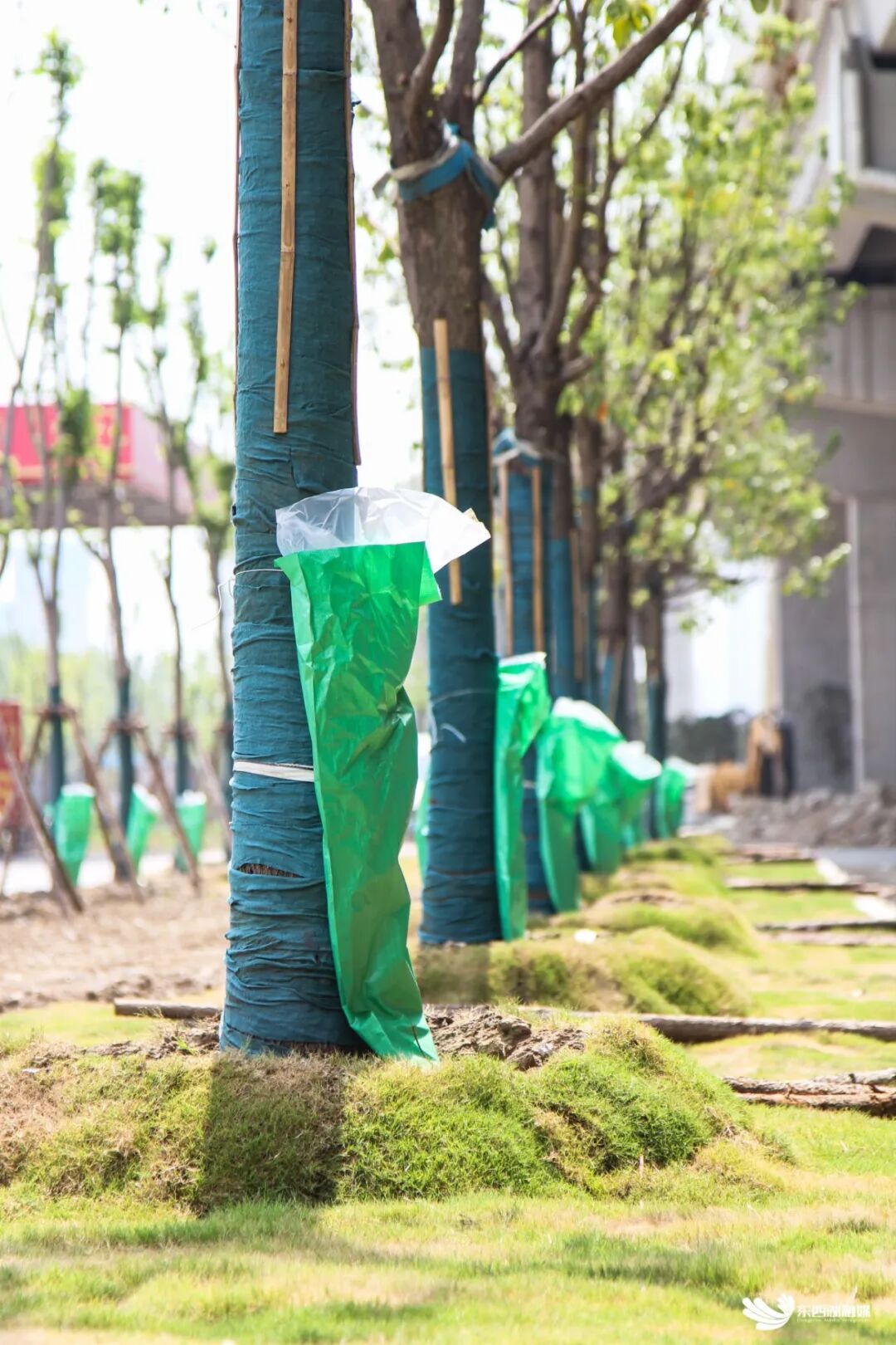 目前,每天投入水车50多台,分两组进行浇水作业,每天清晨4点至9点、下午4点至午夜12点,实行人歇、车不歇,在重点路段,还安排通宵浇水队伍守护苗木。除浇灌外,双层水袋滴灌同步发力,专人巡查,保障滴灌顺畅。