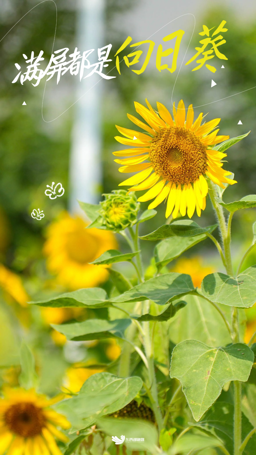 “天气炎热,看到盛开的向日葵,心情也舒畅。”