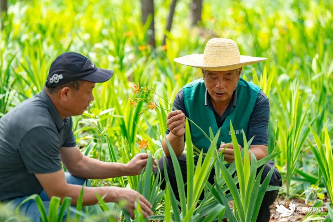 柏泉新兴园艺公司工作人员定期到陡山查看射干长势。