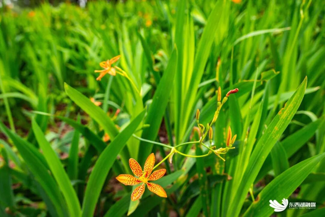 盛夏的柏泉街陡山,70亩橘黄带暗红斑点的“乌扇花”正迎风摇曳,形成一片独特的林下花海。这并非寻常景观花卉,而是中药材射(yè)干的花朵。它不仅扮靓了山坡,更是柏泉街解锁闲置林地资源、发展林下经济的创新探索。