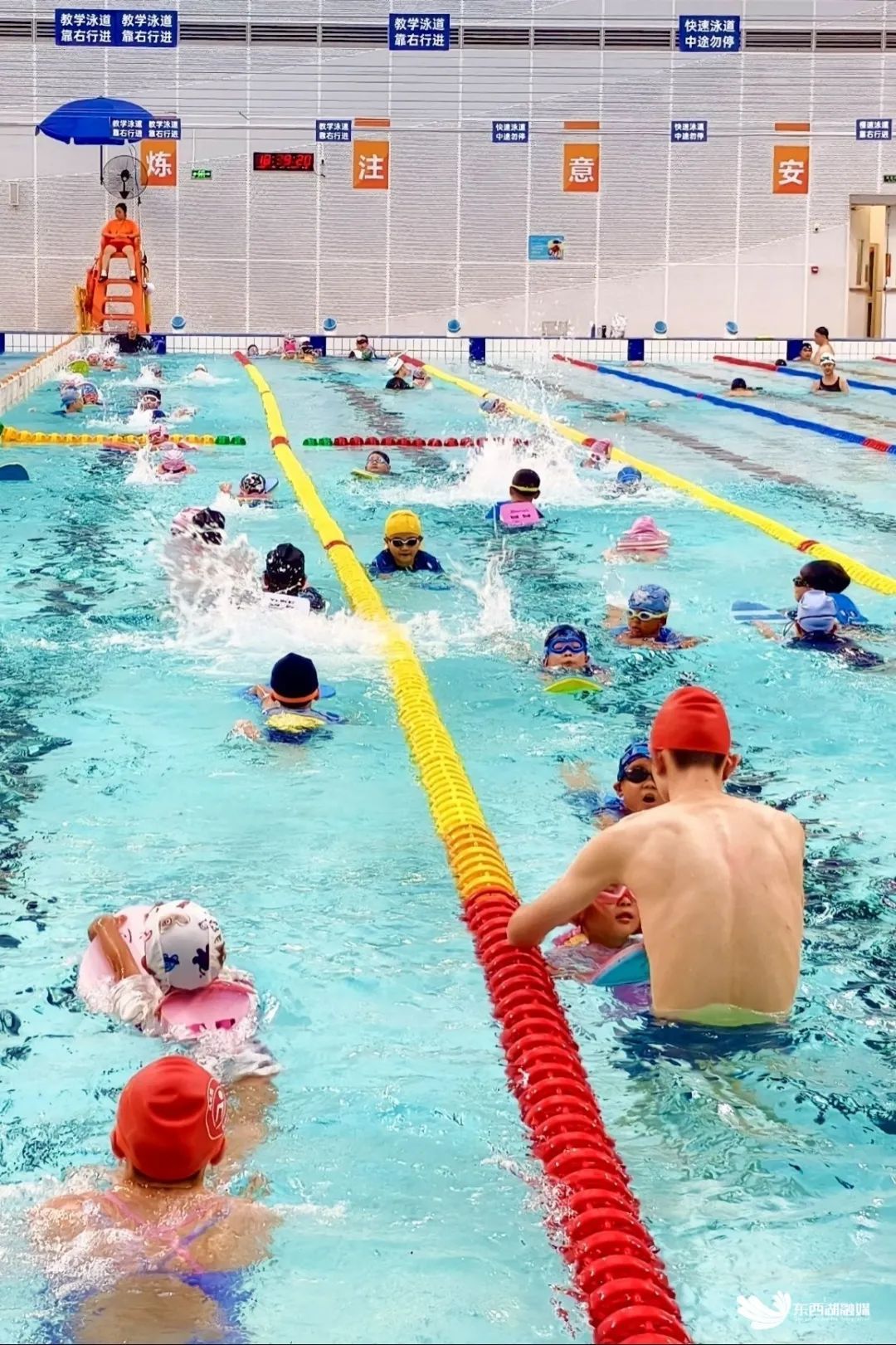 在游泳馆,蛙泳、自由泳、蝶泳各展风采;小学员在教练指导下认真练习憋气划水;儿童区水上充气城堡,是孩子们最爱的水上游玩天地。