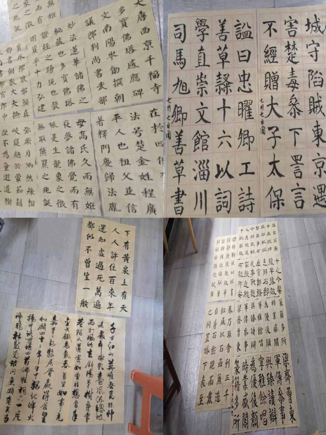交流环节中,老人们围坐在一起,互相品评作品,分享练字心得。段爷爷第一次参加书法活动,展示自己的作品,脸上洋溢着成就感:“以前总觉得书法太高深,今天亲手一试,才发现其中的乐趣,以后要常来学。”活动尾声,大家将作品集中展示,或苍劲有力,或灵动秀美,字里行间流露着对生活的热爱以及对传统文化的敬意。