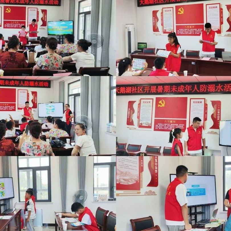 社区精心组织的防溺水教育活动中,天鹅湖社区工作人员巧花心思,将安全知识变成孩子们爱学易懂的“趣味课堂”:特别设计的“小小老师”志愿者环节,让孩子们主动站上讲台,带领全场朗读“防溺水七不两会”等安全要点,清脆的童声里满是责任感;电视上滚动播放着防溺水问题,“小小老师”根据课件向大家提问,现场在抢答与互动中加深了对自救互救知识的理解,让安全意识真正扎根童心。
