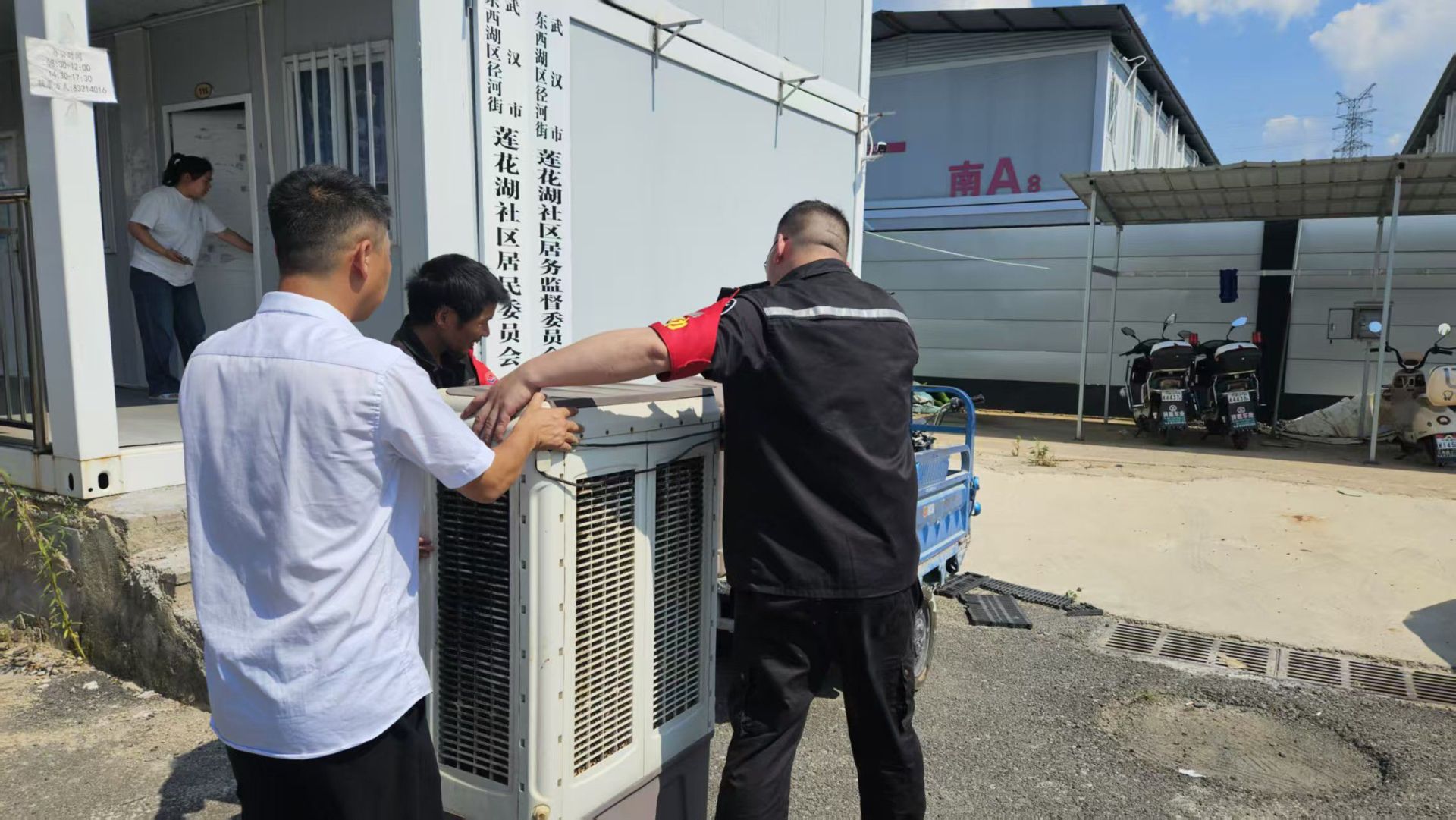 社区联合共建单位向居民养老活动场地捐赠电器。