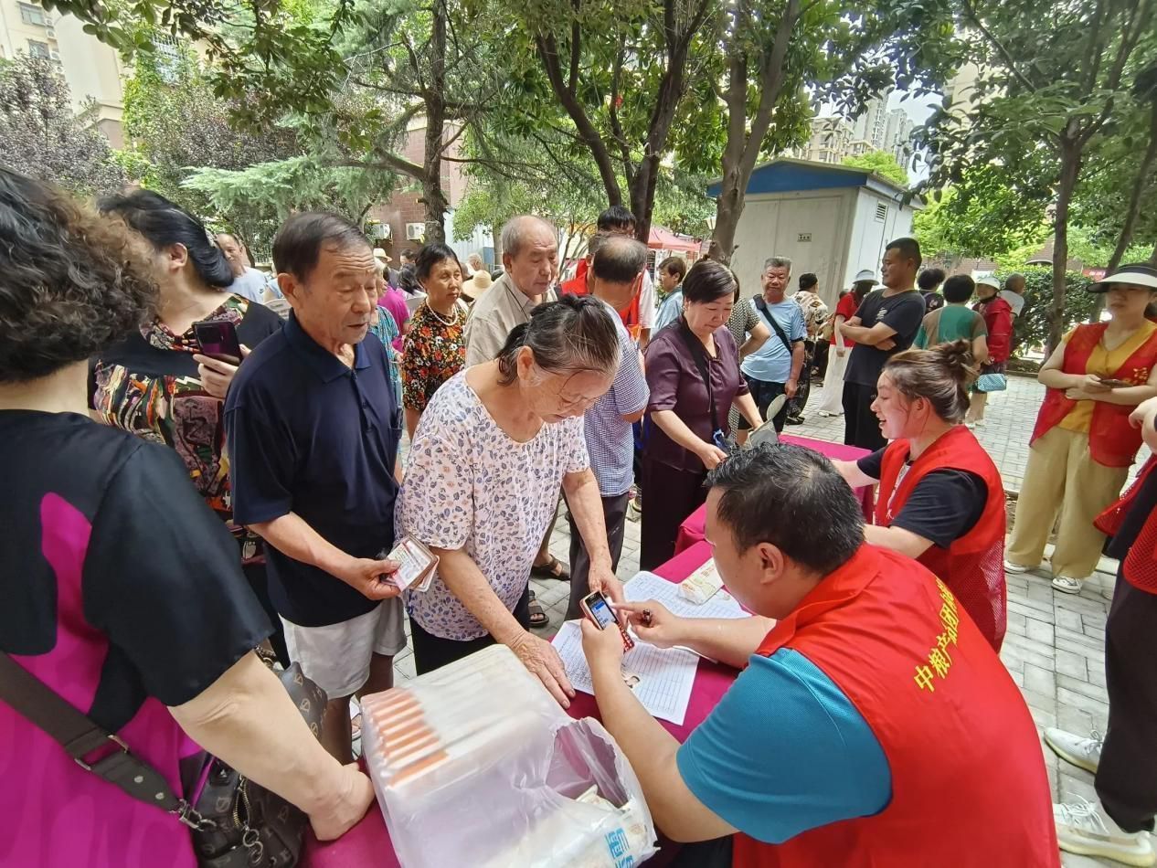 与此同时,赠面区的志愿者们正有条不紊地将面条分发给参与活动的居民。领到面条的居民们脸上洋溢着笑容,刚做完血压检测的王阿姨说:“不仅查了身体,还能领份面条,这活动太贴心了,感觉心里热乎乎的。”