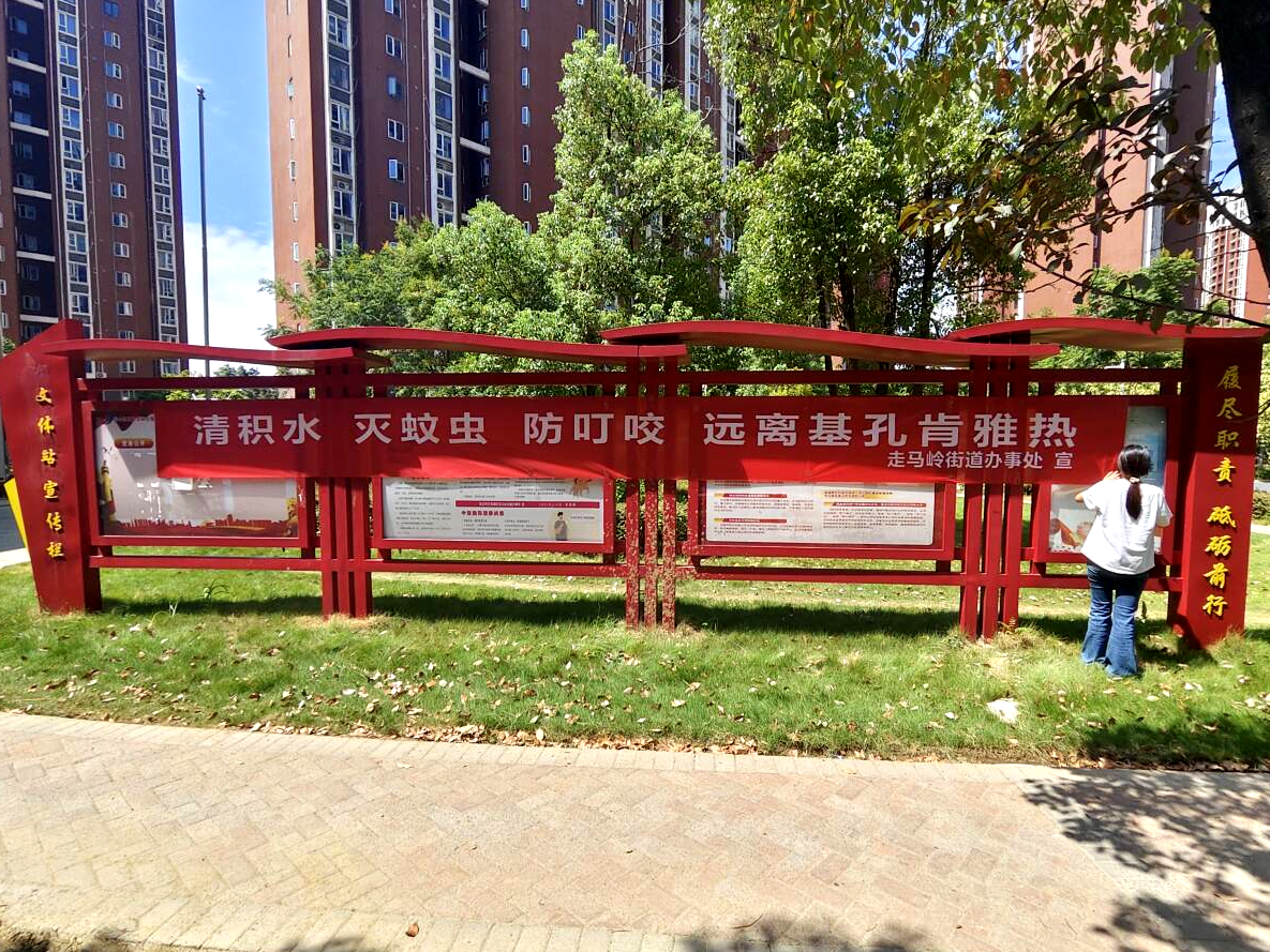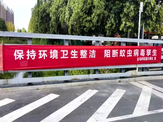 各社区在社区宣传栏、小区显眼处、公共场所醒目位置张贴横幅,并开展入户宣传、发放宣传折页,面对面向居民深入普及登革热、基孔肯雅热传播途径和防控要点,提高居民知晓率,进一步提升居民自我防护意识和能力。同时,各社区通过网格群推送“蚊媒防控小课堂”的短视频,转发预防登革热、基孔肯雅热的倡议书,多渠道扩大宣传范围,构建全方位宣传矩阵。