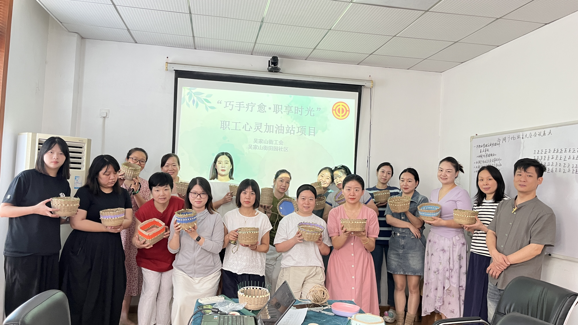 为丰富职工业余文化生活,缓解工作压力,2025年8月13日,吴家山街田园社区工会联合怡居乐有限公司精心策划"巧手疗愈·职享时光"系列主题活动。本期以手工制作麻绳收纳盒为载体,通过创意手作与互动交流,帮助职工放松身心,提升幸福感。