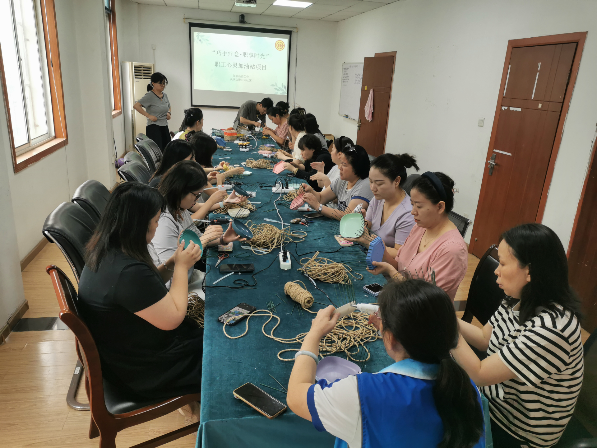 在专业老师的悉心指导下,职工们巧妙运用麻绳、布料等材料,通过缠绕、粘贴、装饰等步骤,亲手制作出兼具实用性与艺术性的麻绳收纳盒。手工过程中,大家全神贯注、沉浸其中,指尖的每一次缠绕都成为压力的释放,每一处细节的打磨都激发着创意灵感。活动现场气氛轻松愉悦,职工们或互相请教技巧,或分享生活趣事,欢声笑语间不仅提升了手工技能,更增进了彼此的情谊,团队的凝聚力在协作与互动中悄然升华。