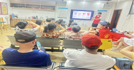 活动伊始,老人们伴着轻快的音乐,做起了 “健康养生” 手语操,在舒展筋骨的同时,也让现场气氛愈发活跃。志愿者张医生从中医视角切入,细致讲解夏季养生的核心原则,着重强调 “养心” 的重要性,建议老人们在饮食上秉持清淡原则、适度参与户外活动、及时调节情绪状态。针对夏季常见的 “苦夏” 问题,他还深入浅出地介绍了 “冬病夏治” 的理念及三伏贴等实用疗法,推荐莲子、百合等清心安神的食材,并反复叮嘱大家注意避免贪凉,以防寒邪入侵。