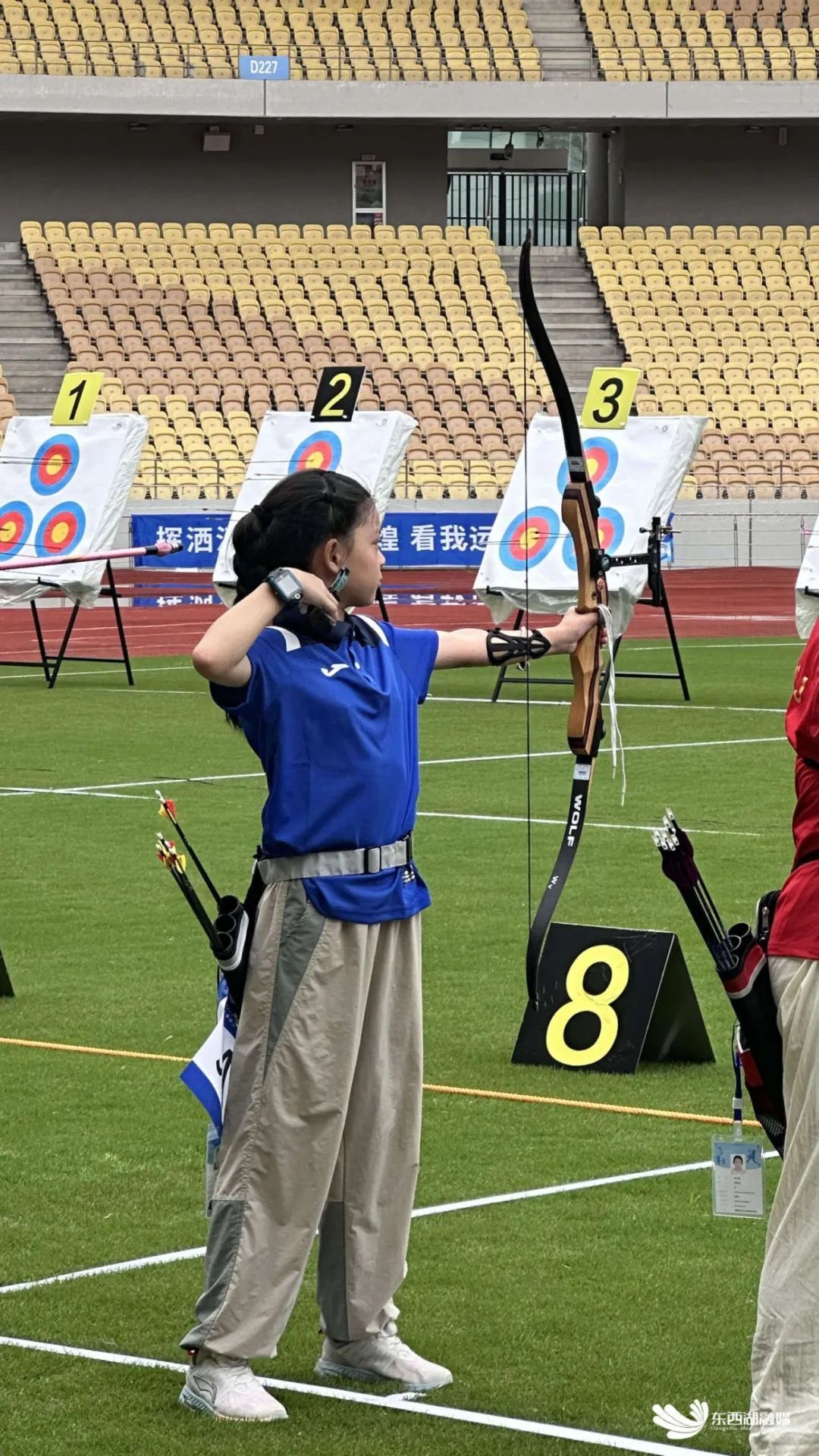 东西湖选手目光如炬,站位、搭箭、扣弦、开弓、瞄准、脱弦——整套动作一气呵成。