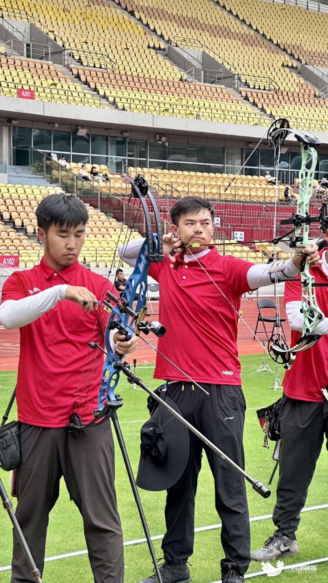 赛场上,少年选手目光如炬。站位、搭箭、扣弦、开弓、瞄准、脱弦——整套动作一气呵成,沉稳流畅,射箭运动的独特魅力在小选手手中完美呈现。