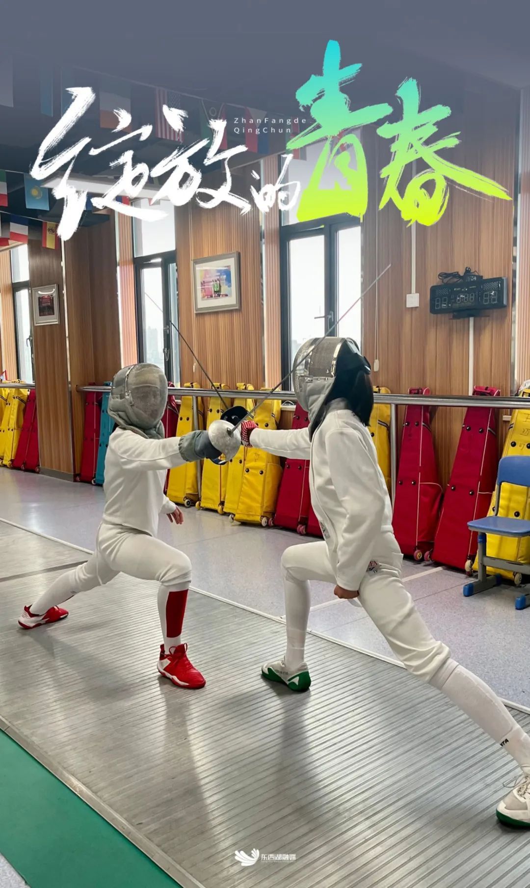2025年湖北省青少年击剑锦标赛现场,李灿(右)与队友。(校方供图)
