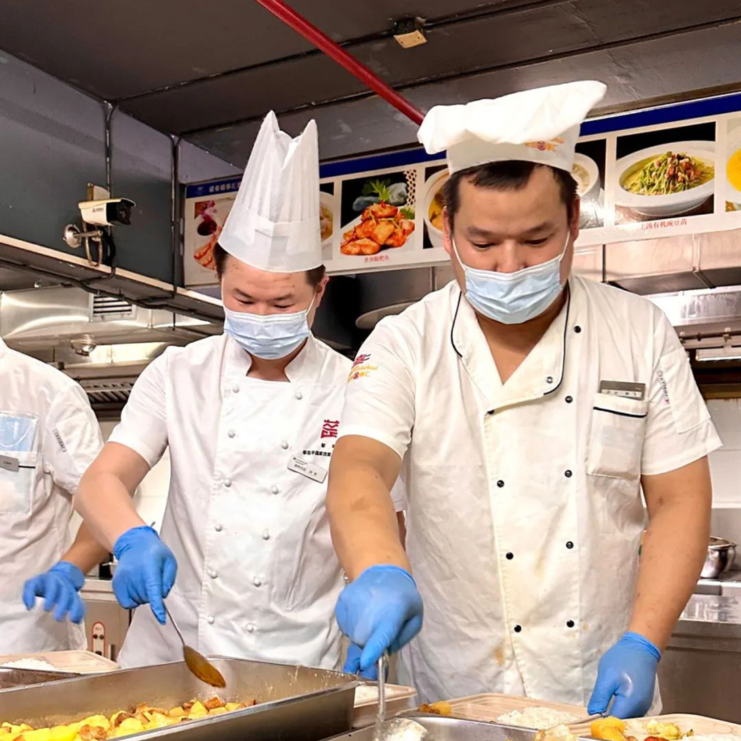 8月20日上午10时,老年助餐合作供餐企业——湖北诺亚禧事汇酒店(下称诺亚禧事汇)后厨一片忙碌:灶上热气蒸腾,大厨们精心烹饪、各显其能,土豆烧肉、清炒包菜、红烧鸡翅根等菜品陆续出锅。
