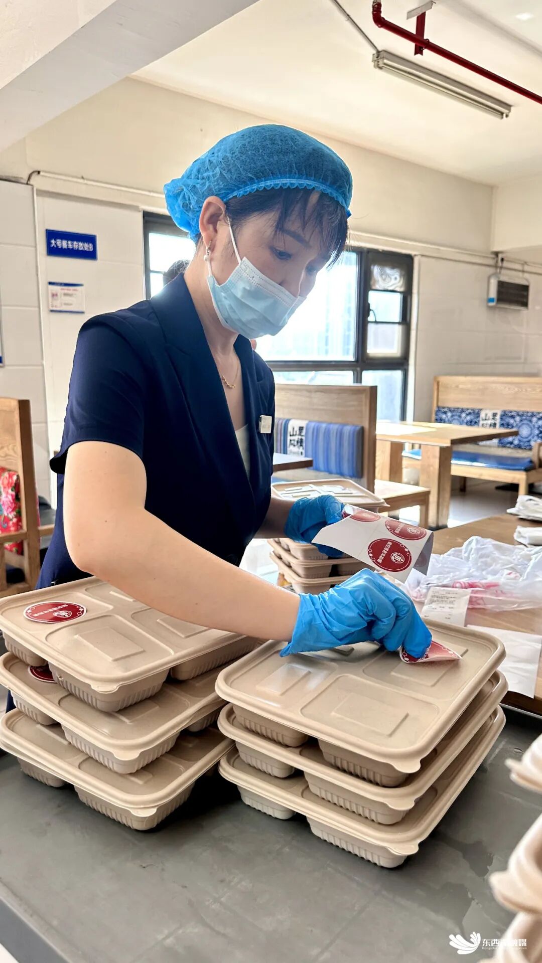 每个餐盒上都张贴了临空港老年助餐的爱心标志。