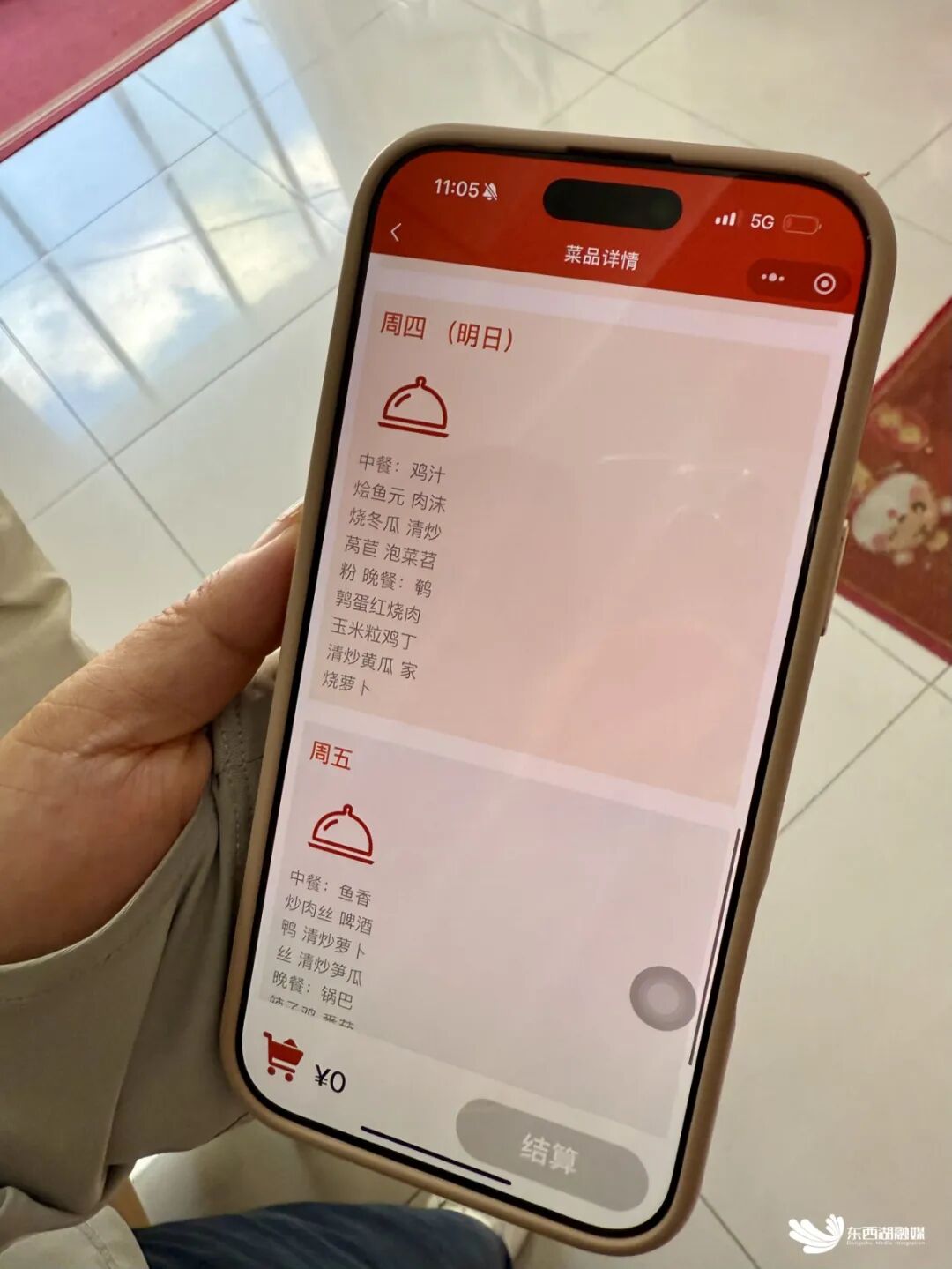 “小程序可提前查看一周菜单、自主下单,荤素搭配合理,再也不用担心老人凑合吃饭了。”