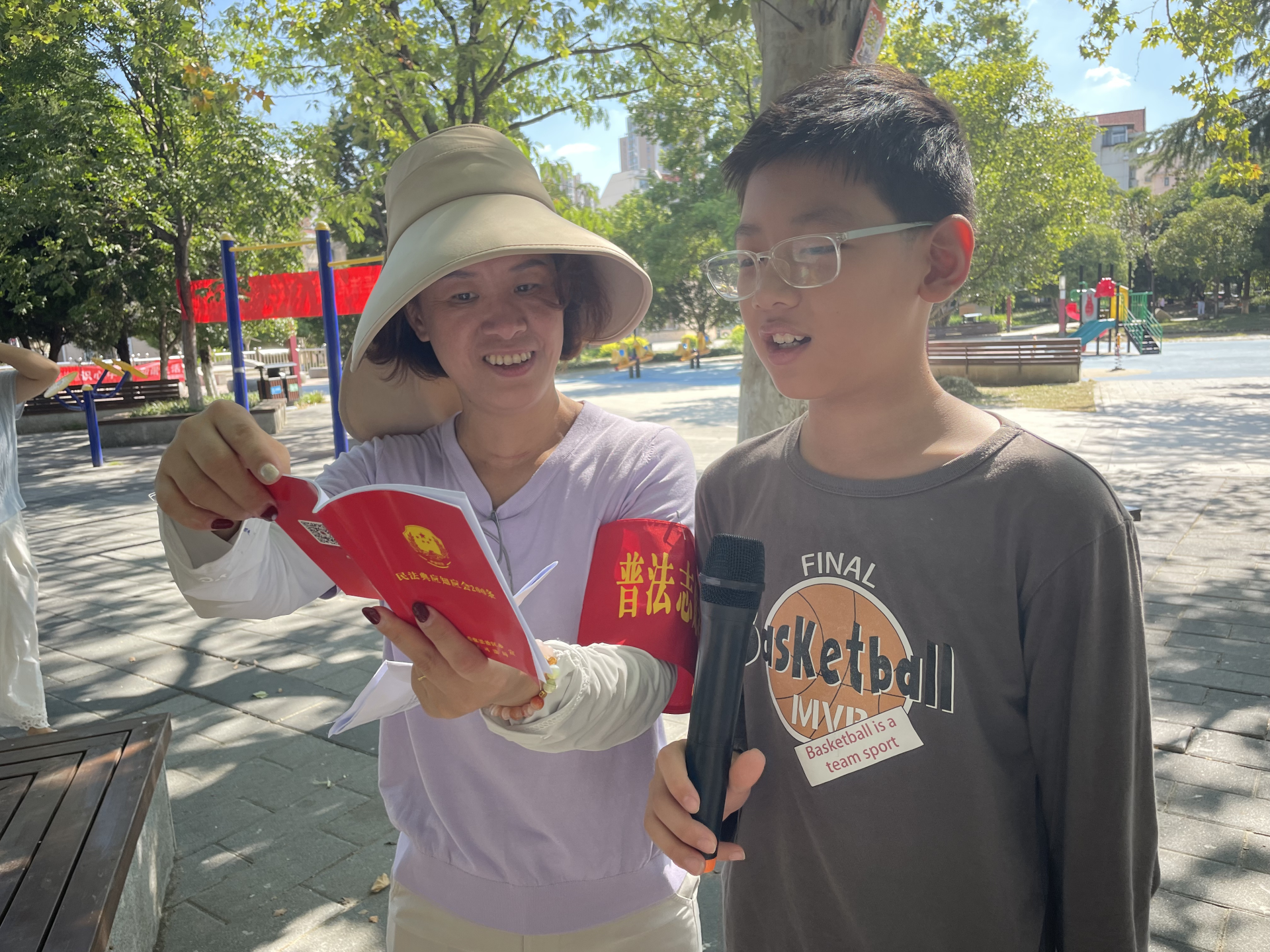 “知法懂法,与法同行;诚是做人之道,法乃治国之本……”四年级学生魏嘉阳小朋友清脆而坚定的诵读声回荡在整个广场。普法“大声读”环节备受孩子们喜爱,移动音响和手持话筒成为他们展示学法热情的“炫技”利器,让普法宣传更显朝气与活力。