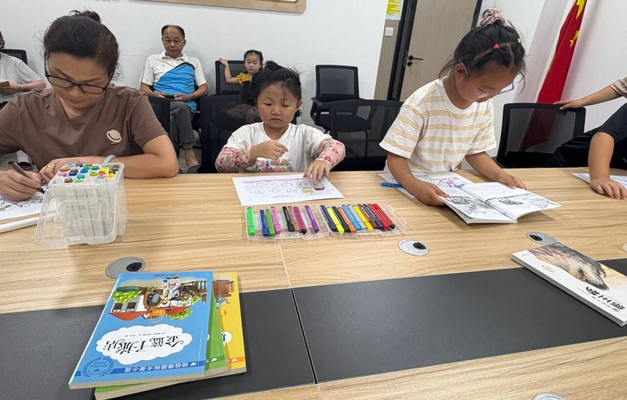 活动现场,大家围坐在一起,绘制《米小圈上学记》《海底两万里》《绿野仙踪》《如果历史是一群喵》等图书内的精美插画。在家长的陪伴下,孩子们通过缤纷的色彩和丰富的图案,表达对各种图书的喜爱。