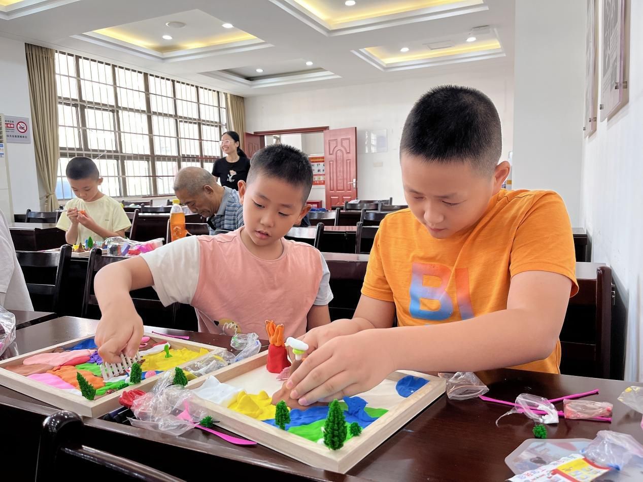 随后的理想社区沙盘坊,每个孩子拿着专属沙盘底座、彩色黏土及小路灯、秋千等微景观道具。有的捏出“新滑梯 + 防护垫”“宠物粪便收集箱”,有的做出“儿童议事角” 黏土牌……创作后,孩子们分享:“我的沙盘里有新滑梯和收集箱,玩得安全又开心!” 这些童真沙盘,成了社区治理的儿童视角参考方案。