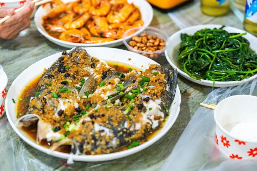 光头家常菜招牌菜蒜蒸鱼头。