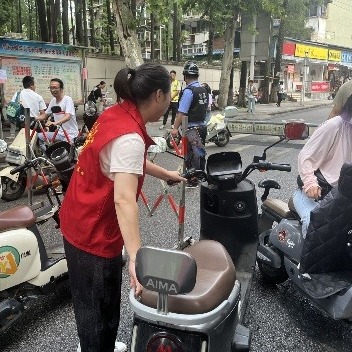 活动期间,志愿者们身着统一志愿马甲,在学校门口及周边路口 “上岗”。负责交通疏导的志愿者们,站在学校门口两侧的斑马线旁,一边微笑着对送学家长说 “麻烦您即停即走,避免后面堵车哦”,一边快速引导车辆有序停靠、驶离;负责学生引导的志愿者则重点关注低年级小朋友,看到有孩子背着沉重书包、手里还拎着文具袋时,会主动上前接过文具袋,牵着孩子的手慢慢走过斑马线,还不忘叮嘱 “过马路要左右看,跟着叔叔阿姨走最安全”;针对校门口因家长聚集可能出现的拥挤问题,志愿者们会分成 2 组,沿着校门两侧的人行道有序疏导,提醒家长 “请大家在护栏外等候,给孩子们留出入校通道”,细致地引导让原本热闹的校门口始终保持着井然秩序。同时,对个别未戴头盔骑电动车接送孩子的家长,社区工作人员耐心劝说其佩戴安全头盔,讲解了不佩戴头盔可能带来的严重后果,普及了交通安全法规,引导家长提高安全意识,从自身做起,文明、安全出行。