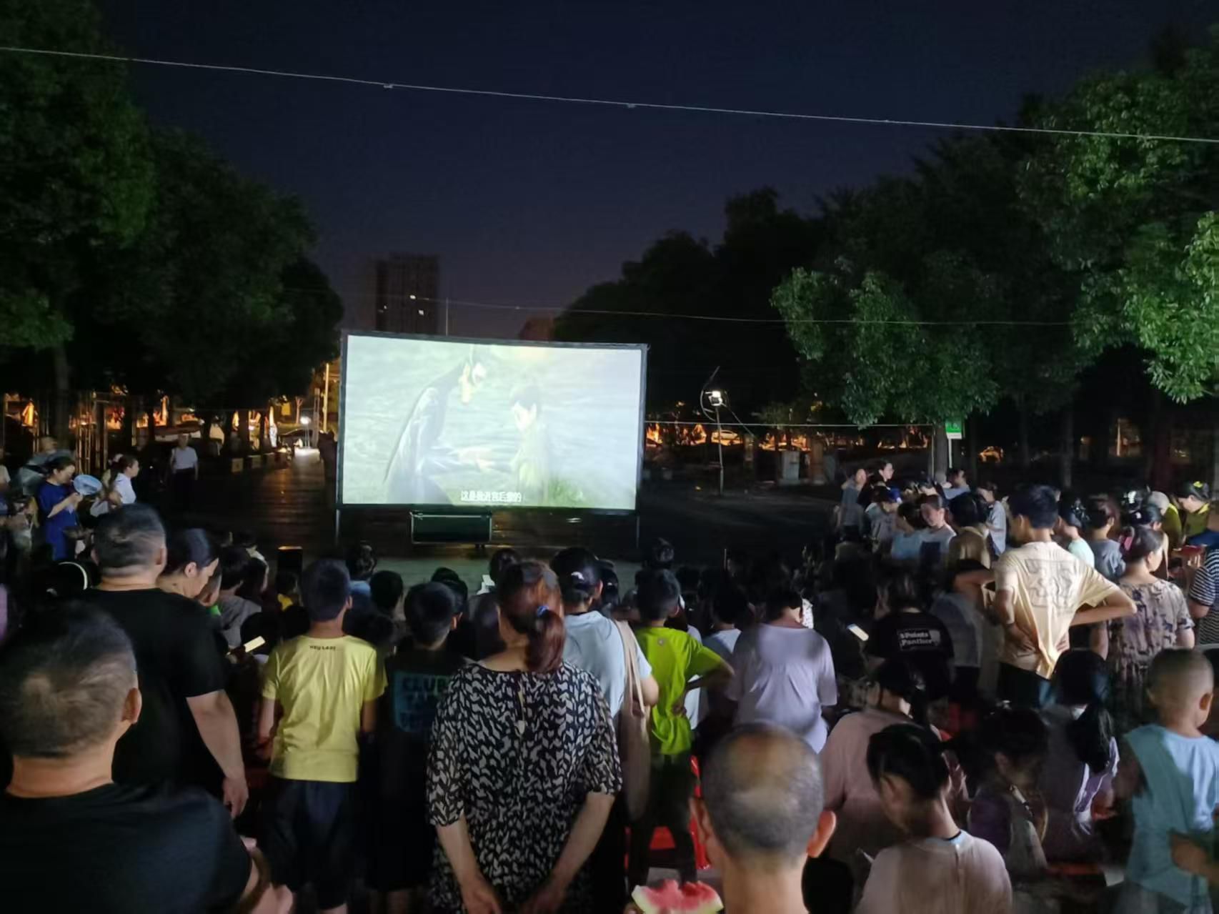 随着夜幕降临,“星空电影节”温情开启。居民们齐聚一堂,在星空下共同观看经典动画电影《熊出没之重启未来》,享受惬意的夏夜时光。为提升活动体验,现场还贴心准备了爆米花、冷饮、西瓜等消暑物资,供居民免费取用,让大家在轻松愉悦的氛围中感受到社区的关怀与温暖。