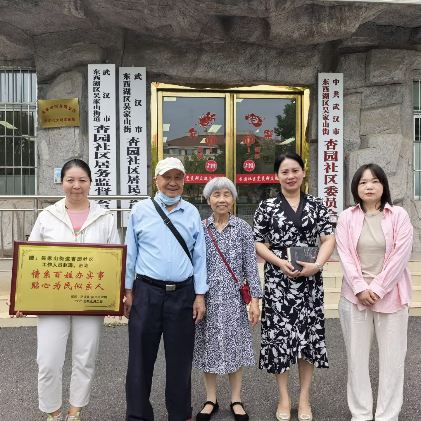 “没有孩子在身边,社区就是我们最亲的依靠。” 提及杏园社区的帮扶,失独老人夏爹爹的眼眶里满是暖意。2025年9月8日失独老人夏爹爹为杏园社区赠送“情系百姓办实事 贴心为民似亲人”的感谢牌,一声声感谢和感谢牌饱含了对社区工作的高度认可。
