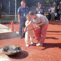 随着模拟火灾警报响起,演练正式开始。在老师和消防队员的引导下,小朋友们迅速有序地按照预定逃生路线,用湿毛巾捂住口鼻,弯腰快速撤离至操场安全区域,整个过程紧张有序,仅用时3分钟便完成全员疏散。此外,现场还演示了灭火器的使用方法和水枪的出水方法,并邀请师生实操体验。