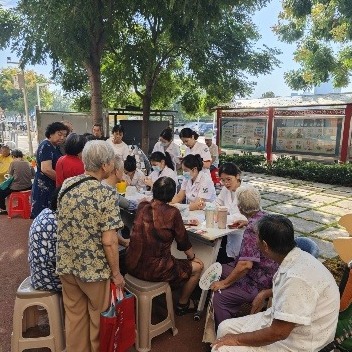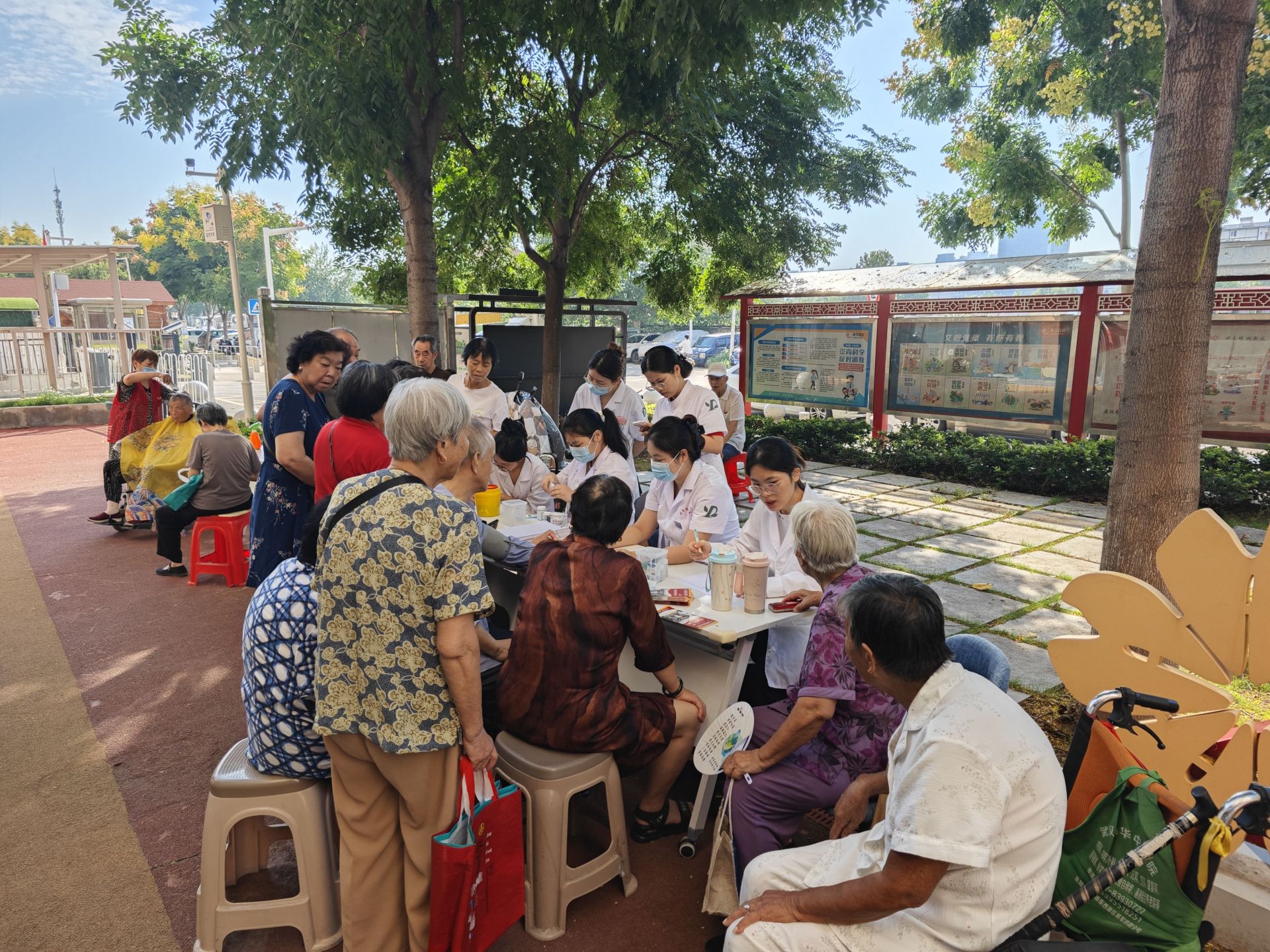 社区党员先锋队和共建单位志愿者提前布置好活动现场,休息区坐满了前来等候的老人们,大家聊家常、说近况,现场气氛温馨热闹。