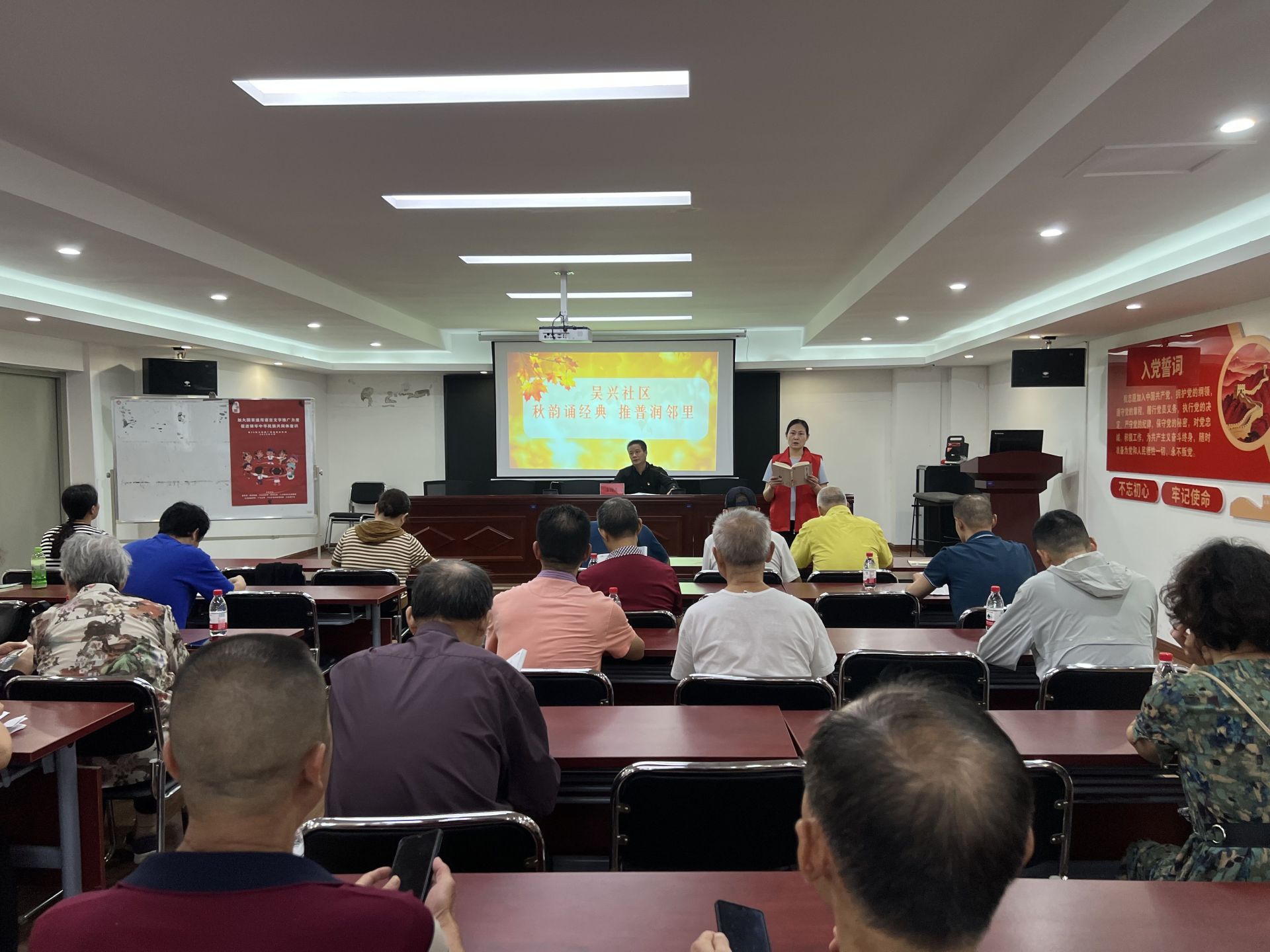 金秋送爽,书香致远。在第28届全国推广普通话宣传周期间,为让普通话推广与秋日氛围、经典文化相融合,2025年9月18日上午,吴兴社区开展“秋季经典诵读”特色活动,邀请社区居民共赴一场“声情并茂”的语言盛宴。