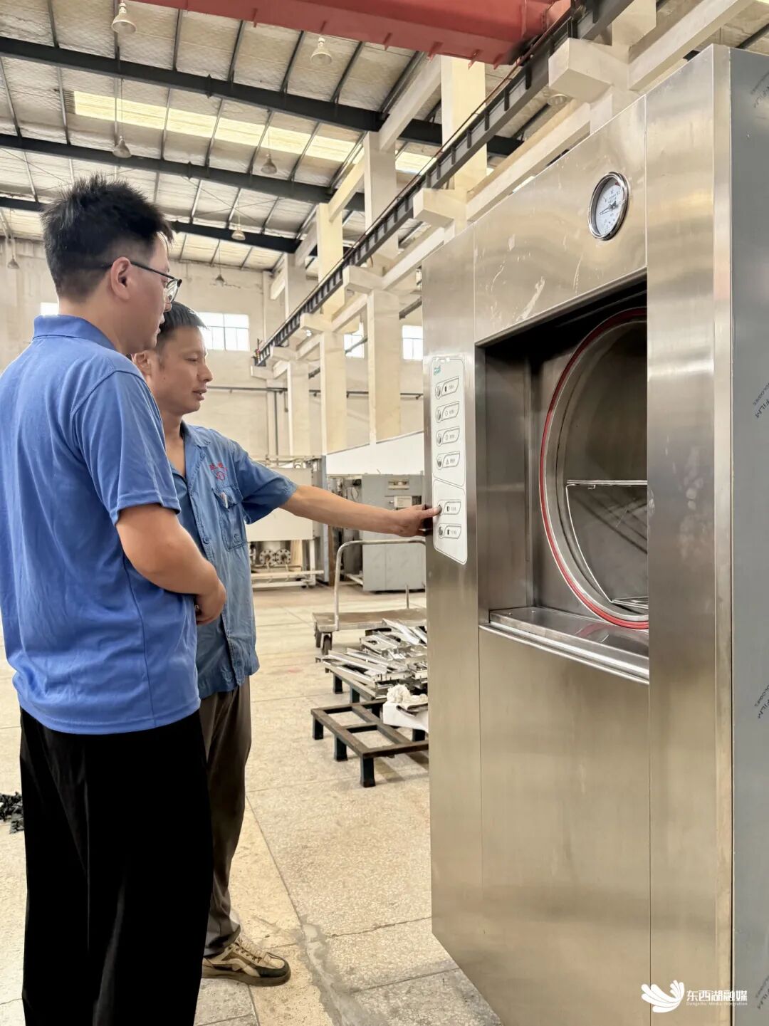 如今,江汉医疗生产园区内,工作人员正为一批新订单忙得热火朝天:从9月到年底,要生产完成100多台大型清洗消毒设备。车间里焊光闪烁,设备有序组装。