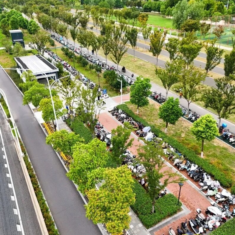 在二雅路地铁口C口一侧,一片植被稀疏的闲置绿地被重新规划,腾出300平方米空间,新增500余个电动车位,有效释放了地铁口安全区域。