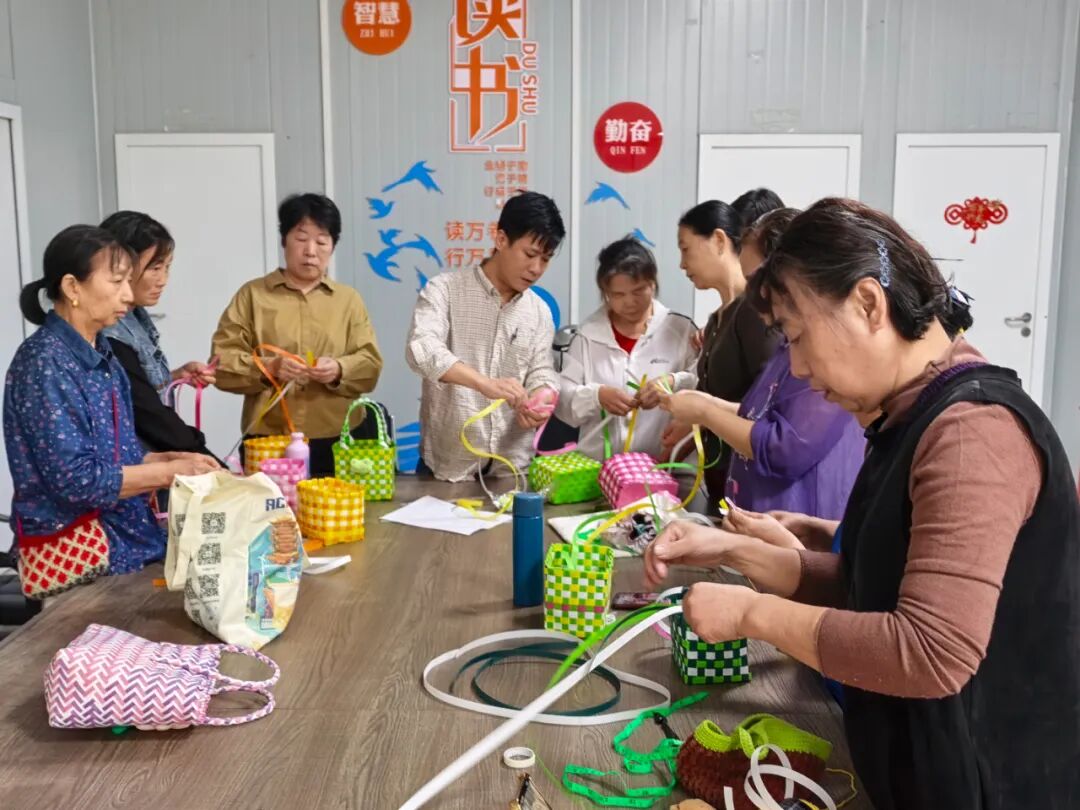 这份温暖的背后,是志愿者们多日的精心筹备。9月初,华星社区提前为星光编织志愿服务队采购了藤编材料与工具,还专门邀请专业老师开展教学,手把手指导队员掌握基础编织技巧。学习结束后,志愿者们常常围坐在一起分工协作编织,剪藤条、绕线圈、编纹路,指尖翻飞间,零散藤条逐步变成造型简约、质感质朴的手提包,每一道纹路都凝聚着大家的诚意。