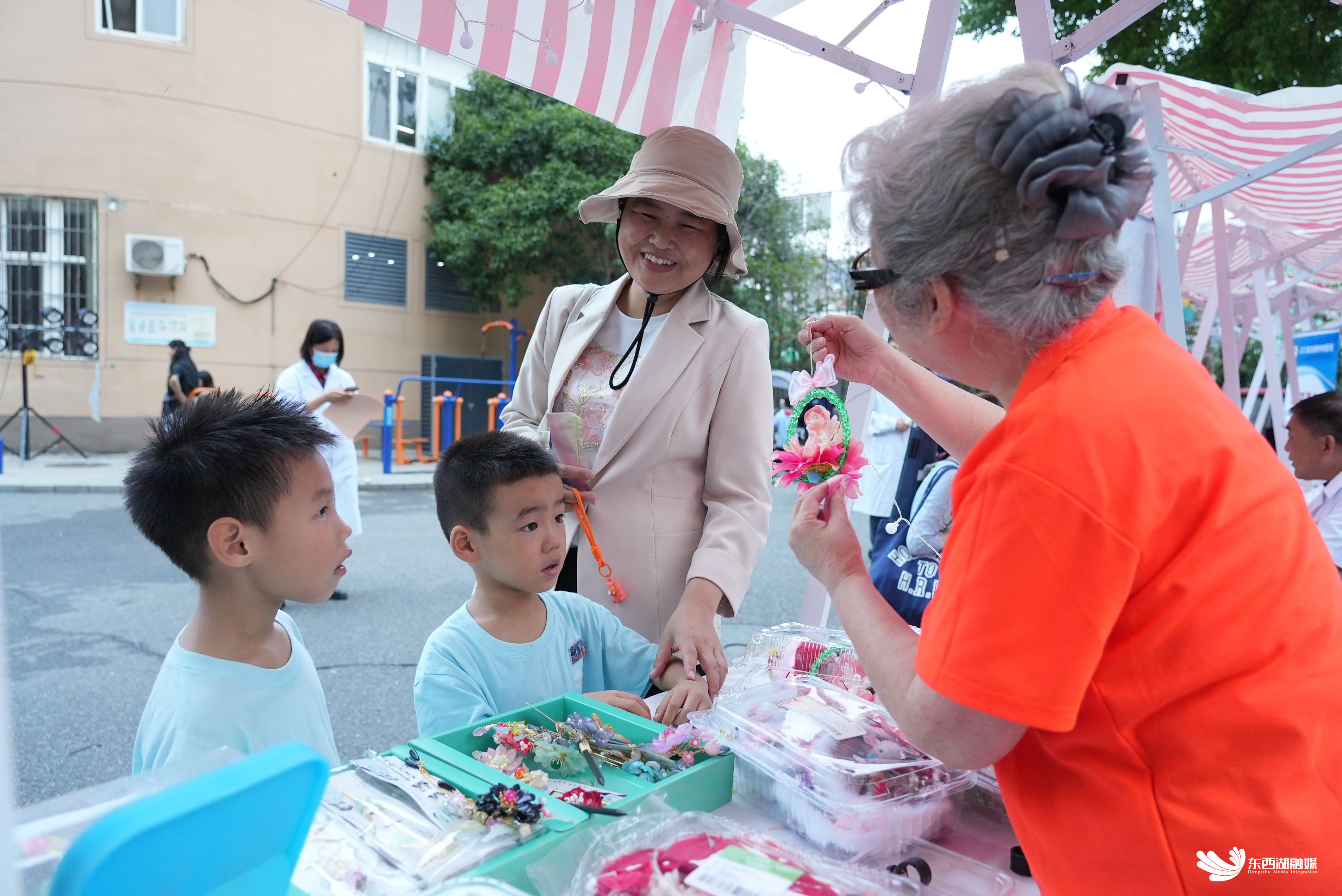 在手工艺品义卖区,巧手居民们亮出绝活:钩针玩偶、手绘团扇、自制发簪……每件都是限量版,大家驻足欣赏、热情唠嗑。