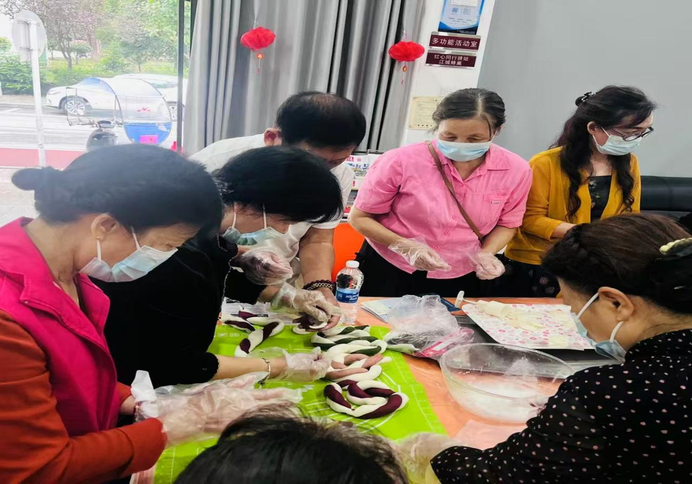 月饼“DIY”环节是此次活动的重头戏,工作人员早早备齐面粉、馅料、模具等材料,由“福邻睦友”志愿者全程指导教学。老人们围坐在一起,兴致勃勃地揉面团、包馅料、压模具,志愿者一边示范手法,一边轻声叮嘱:“您看这面团要揉得均匀才紧实,就像咱们做人做事,得踏踏实实、干干净净;包馅料要‘不多不少’,就像过日子要勤俭节约、不贪不占。”老人们听得认真、做得投入,虽然手法略显生疏,但每一块印着“福”“廉”字样的月饼,都承载着老人们对团圆的期盼和对廉洁家风的践行。