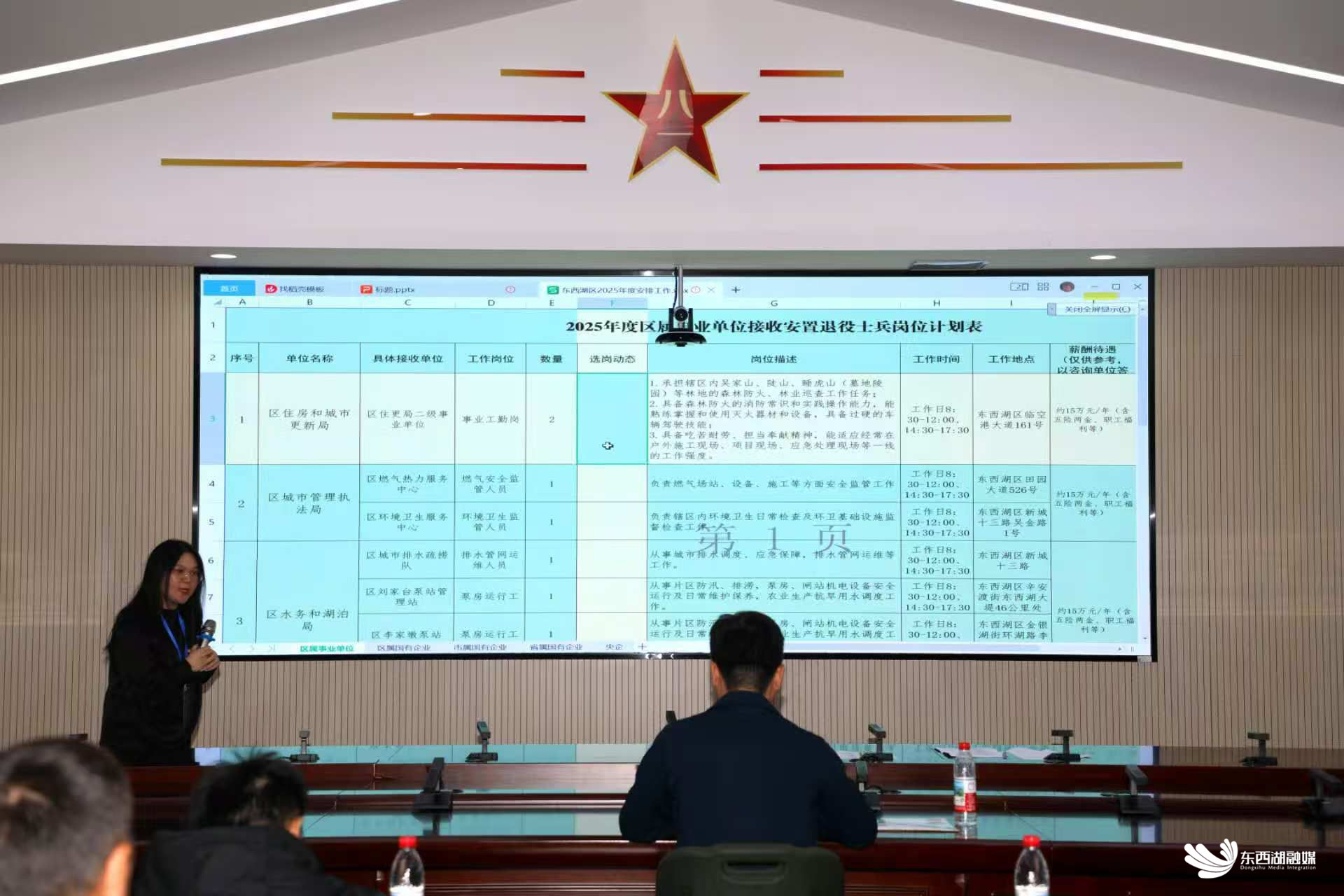 9月26日,东西湖区2025年度安排工作退役士兵公开选岗大会顺利举行。44名符合政府安排工作条件的退役士兵,在量化评分结果的指导下,依次选定了工作岗位,标志着他们开启了参加地方经济社会建设、建功立业再出发的崭新旅程。