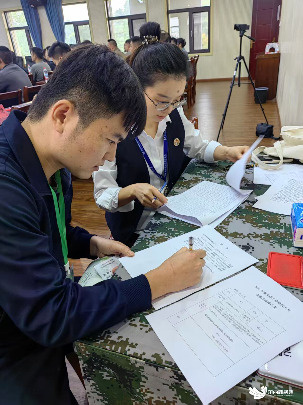 选岗大会现场庄重严肃、流程规范。区纪委监委、区委组织部、区人武部、区委编办、区财政局(区国资局)、区人社局等多部门联合监督,法律顾问与公证人员全程见证,确保环节合规、结果有效。退役士兵按量化积分高低依次选岗,现场签字确认、现场公布结果,流程透明有序,切实保障了每一位退役士兵的合法权益。