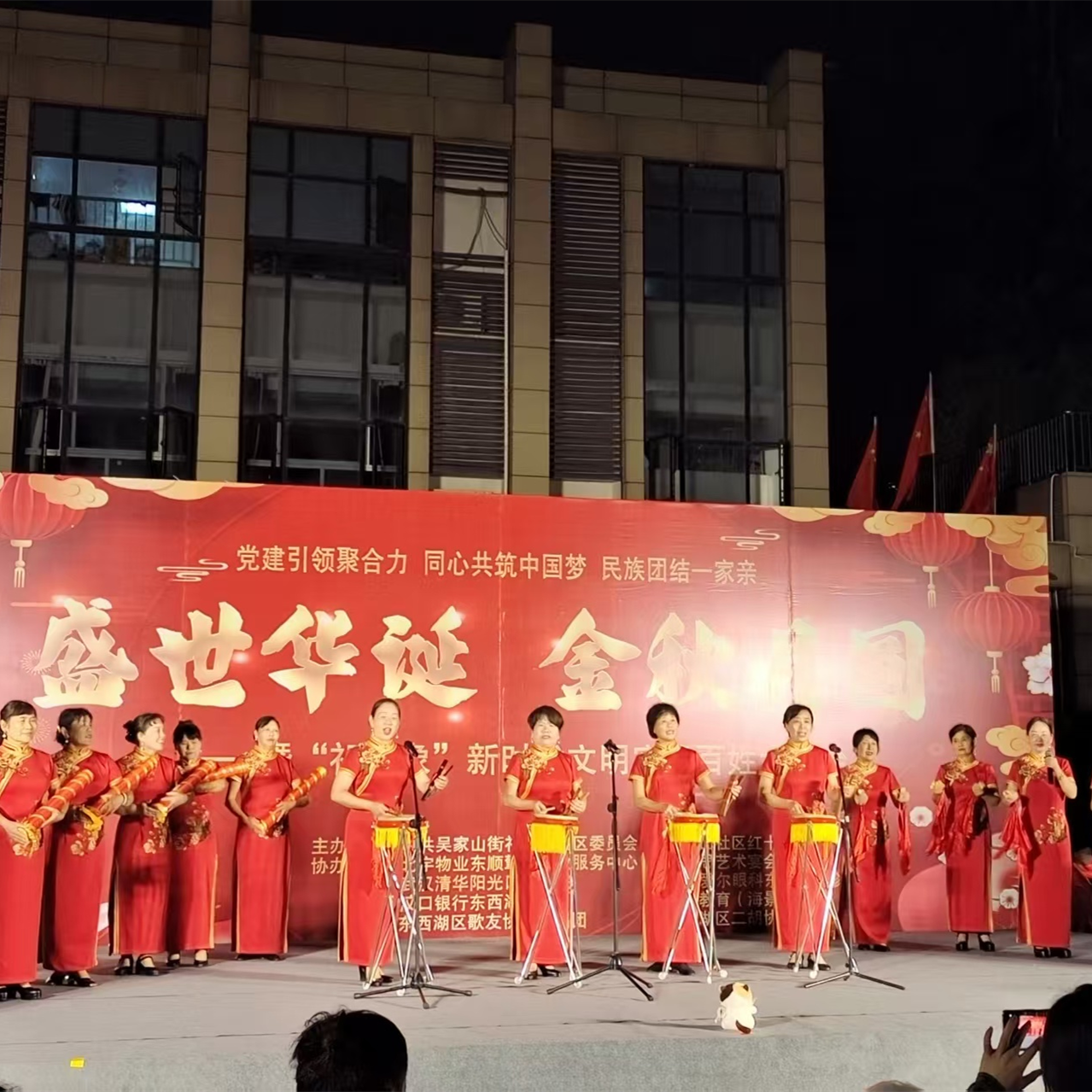 金桂飘香迎双节,载歌载舞庆团圆。在国庆与中秋双节来临之际,为使社区居民度过一个欢乐祥和的节日,丰富居民的精神文化生活,祁家山社区于9月26日晚在东顺擎天西广场隆重举办了“盛世华诞 金秋月圆”文艺汇演。现场气氛热烈,掌声不断,400余名社区居民欢聚一堂,共同享受了这场视听盛宴。
